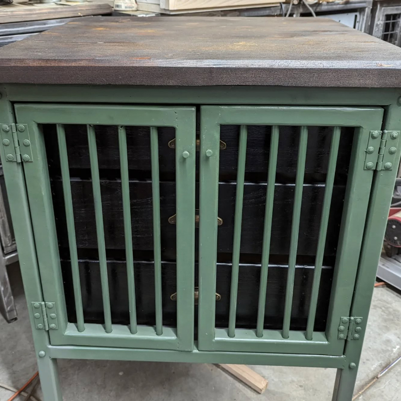 My metalworking arsenal consists of a basic welder, a couple plasma cutters, a chop saw, angle grinders, a bench grinder and a bunch of hand tools. I enjoy using metalworking for furniture, shop projects, knife making, and some industrial sculpting.